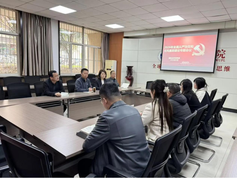 3月25日,国际法学院党委于格物楼一层会议室召开2026年全面从严治党暨党风廉政建设专题会议,学院班子成员、各党支部书记、科级干部及全体行政人员参加会议。学院党委书记李立主持会议。