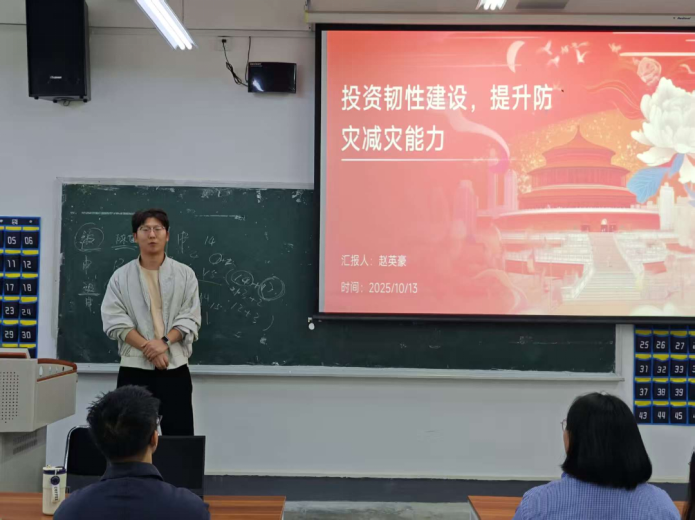 2025年10月13日国际减灾日当天,国际法学院(国际仲裁学院)以“投资韧性建设,提升防灾减灾能力”为主题召开班会,由赵英豪、程一含两位同学主持。此次班会紧扣近期西安降雨持续时间长、雨量大的实际情况,旨在提升全体同学安全意识与防护能力,是学院落实平安校园建设要求的重要举措。