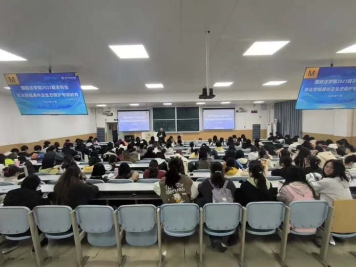 为深入贯彻习近平生态文明思想,切实筑牢学生生命安全防线,引导学生树立正确的自然观与生命观,11月3日,国际法学院(国际仲裁学院)开展禁止非法穿越秦岭及生态保护主题教育活动,2023级辅导员苏芝双主持,2023级全体学生参加。