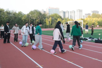 本次趣味运动会精心设置了“n人n+1足”“众星捧月”“踩气球”三大特色项目。赛前,赛事主持人通过清晰演示与细致讲解,明确比赛规则与安全须知,各参赛队伍迅速调整状态,队员间相互鼓劲、默契磨合,赛场洋溢着跃跃欲试的热烈氛围。整场活动既兼顾竞技性与趣味性,又注重团队精神的培养,为学生搭建了展现自我、增进情谊的良好平台。