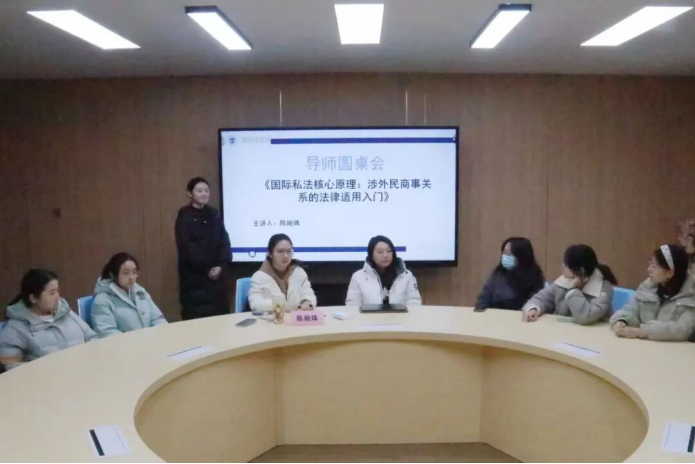 为帮助学生深化对国际私法的认识,提升专业素养和综合能力,拓展学术视野,12月12日,国际法学院(国际仲裁学院)于学生成长发展中心枫桥矛盾调解室开展了导师圆桌会系列活动,本科生导师陈婉姝、张羽佳主讲,2025级学生代表参加。