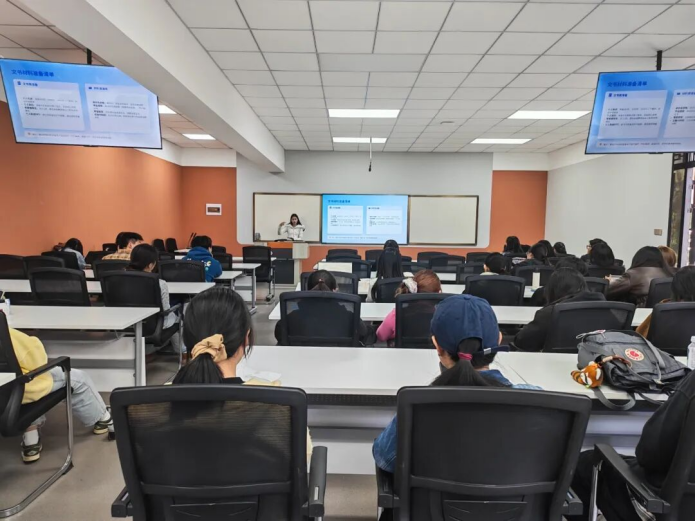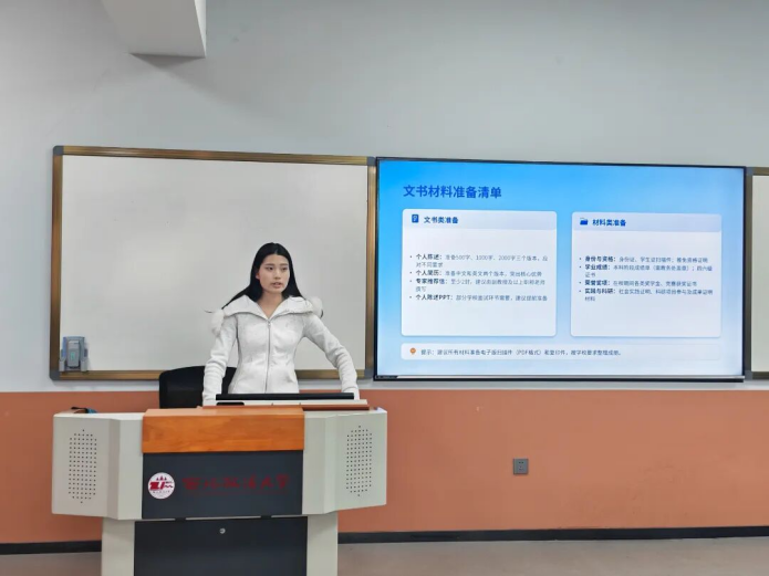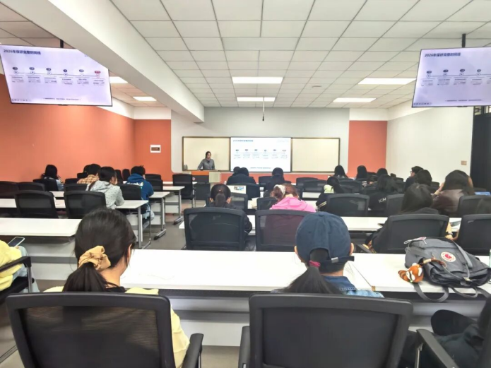 经验分享环节中,三位同学结合自身推免历程与备考心得,聚焦申请流程规范、导师联络技巧、面试筹备方法、时间统筹规划等同学们普遍关切的推免核心要点进行了全面细致地交流。李欣霖深入剖析了夏令营参与技巧、预推免备考攻略、九推流程,强调要密切跟踪各时间节点相关政策发布,把握住推免节奏;杨锦秀则拆解了综合素质成绩构成及核算方法、目标院校录取所需材料筹备要点,提醒同学们务必提前谋划、全面筹备,做好各类材料的梳理完善;王之妍从推免常用术语解读、个人简历精准优化、目标院校科学甄选等细节切入,建议大家主动参加各类征文竞赛,综合考量并审慎选择适配自身发展的目标院校。