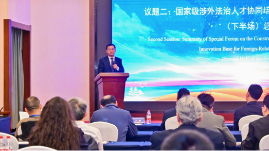张超汉教授在“国家级涉外法治人才协同培养创新基地专题论坛”环节担任主持人,同时以“西北政法大学以实践为导向的涉外法治人才培养的特色与创新”为题发言,并对本环节专题论坛做总结发言,表示我校将继续发挥学科和平台优势,积极推进涉外法治交流合作,为服务“一带一路”建设贡献更多智慧与力量。