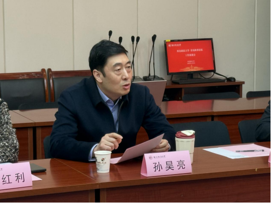 孙昊亮对青岛海事法院来校调研交流表示欢迎。他介绍了我校的办学特色和近年来教育高质量发展新成效,遵循习近平总书记要打破高校和社会之间的体制壁垒,将实际工作部门的优质实践教学资源引进高校,加强法学教育、法学研究工作者和法治实际工作者之间的交流的指示精神,希望与实务部门整合各自资源优势,形成协同创新合力,为涉外海事法治建设注入新动能。表示双方应加强合作,理实互动,让涉外海事审判鲜活案例走进课堂,通过合作解决当前涉外海商事审判理论研究与司法实践中的难点问题。