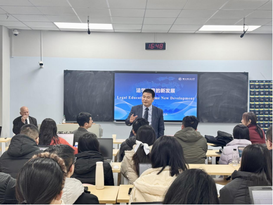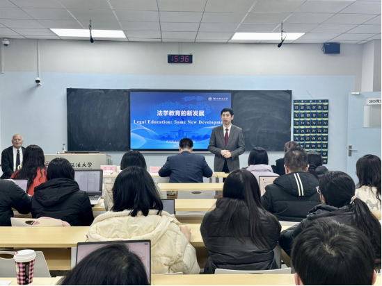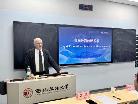 2025年12月30日,美国洛约拉大学法学院教授、亚当斯&里瑟杰出法学教授詹姆斯·埃蒂安·维亚托(James Étienne Viator)受邀到访西北政法大学国际法学院授课讲学,在雁塔校区三号教学楼3603教室为我院师生作题为“法学教育的新发展”的精彩专题讲座。讲座由国际法学院副院长吕江教授主持,潘俊武教授担任与谈人,国际法学院七十余位博、硕士研究生参加讲座。