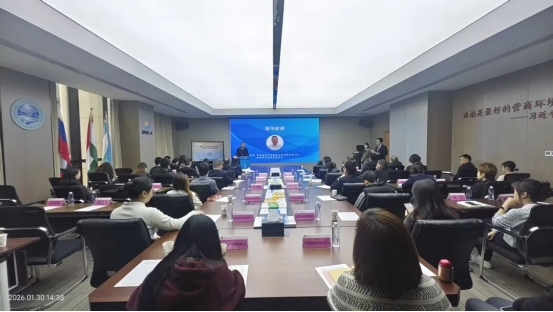 2026年1月30日下午,西部陆海新通道的规则交汇“软联通”——《联合国可转让货物单证公约》下铁路提单物权化的新变化研讨沙龙在“三个中心”举办。本次研讨沙龙由西安市司法局、西安市法学会、西安浐灞国际港管委会主办,西安市司法局“三个中心”办公室、市律协自贸区建设与国际物流专委会、北京大成(西安)律师事务所等多家单位联合承办。来自机关单位、法律服务机构、企业、高校、行业协会的60余名代表齐聚一堂,共话行业发展新机遇。最高人民法院国际商事专家委员会委员、我校国家智库研究基地涉外法治研究中心执行主任、首席专家王瀚教授应邀出席会议。