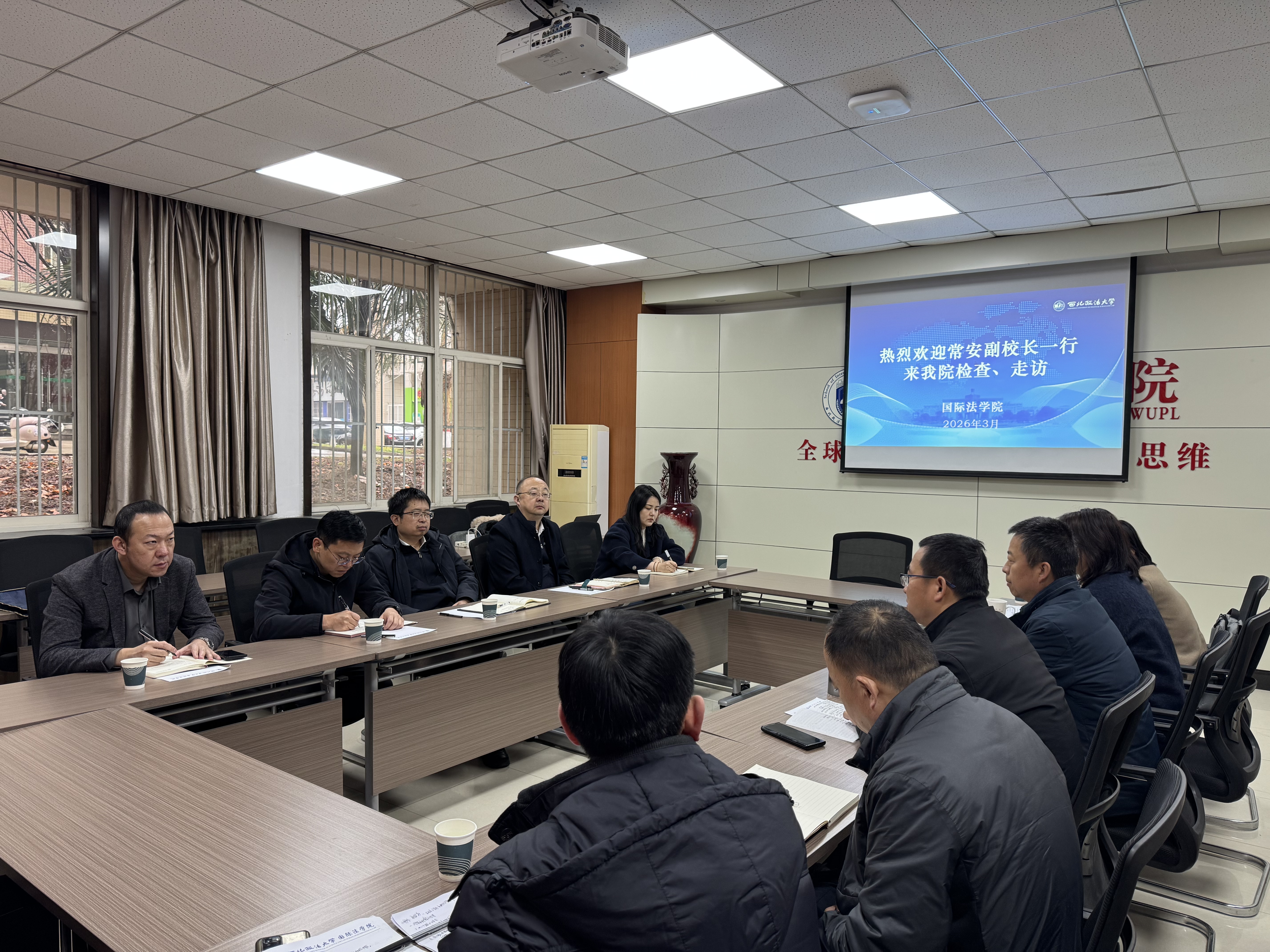 3 月 1 日上午,副校长常安一行到国际法学院开展检查走访并召开工作座谈会,研究生院副院长李洋、人权研究中心主任马成、后勤保障处处长朱锋等同志陪同调研。学院领导班子成员参加会议,会议由学院党委书记李立主持。