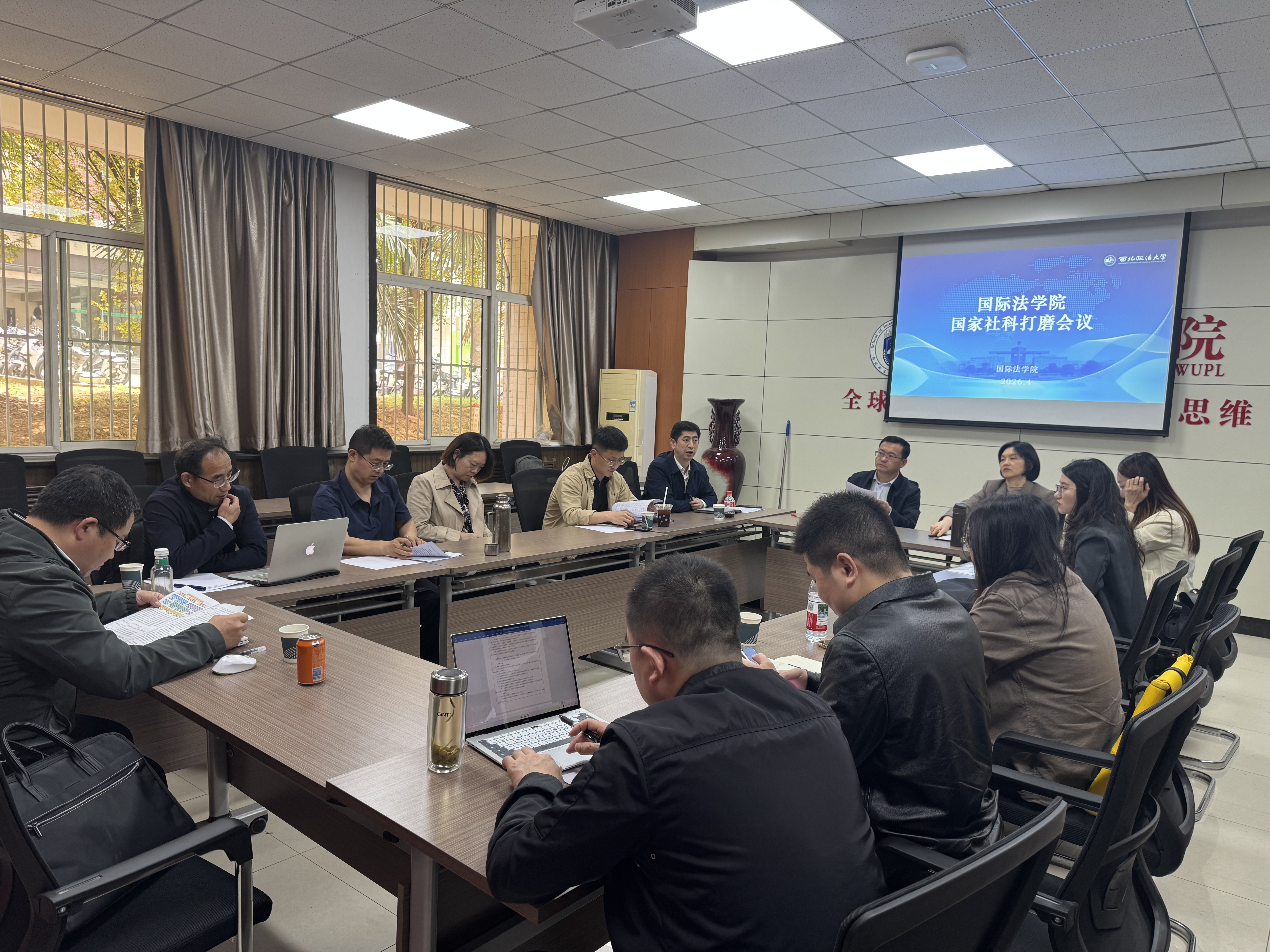 为进一步提高国家社科基金项目申报质量,切实提升项目立项成功率,推动学院科研工作高质量发展,2026年4月14日下午,我院在长安校区会议室组织召开了2026国家社科材料打磨会议。会议特邀西北政法大学国际法学院孙尚鸿教授、王泽林教授以及科研处项目管理科秦远科长组成专家评审组,对我院10余位教师的项目申报书进行了集中、深入的指导。整场指导会持续四个多小时,气氛热烈、交流充分。国际法学院副院长吕江教授主持会议。