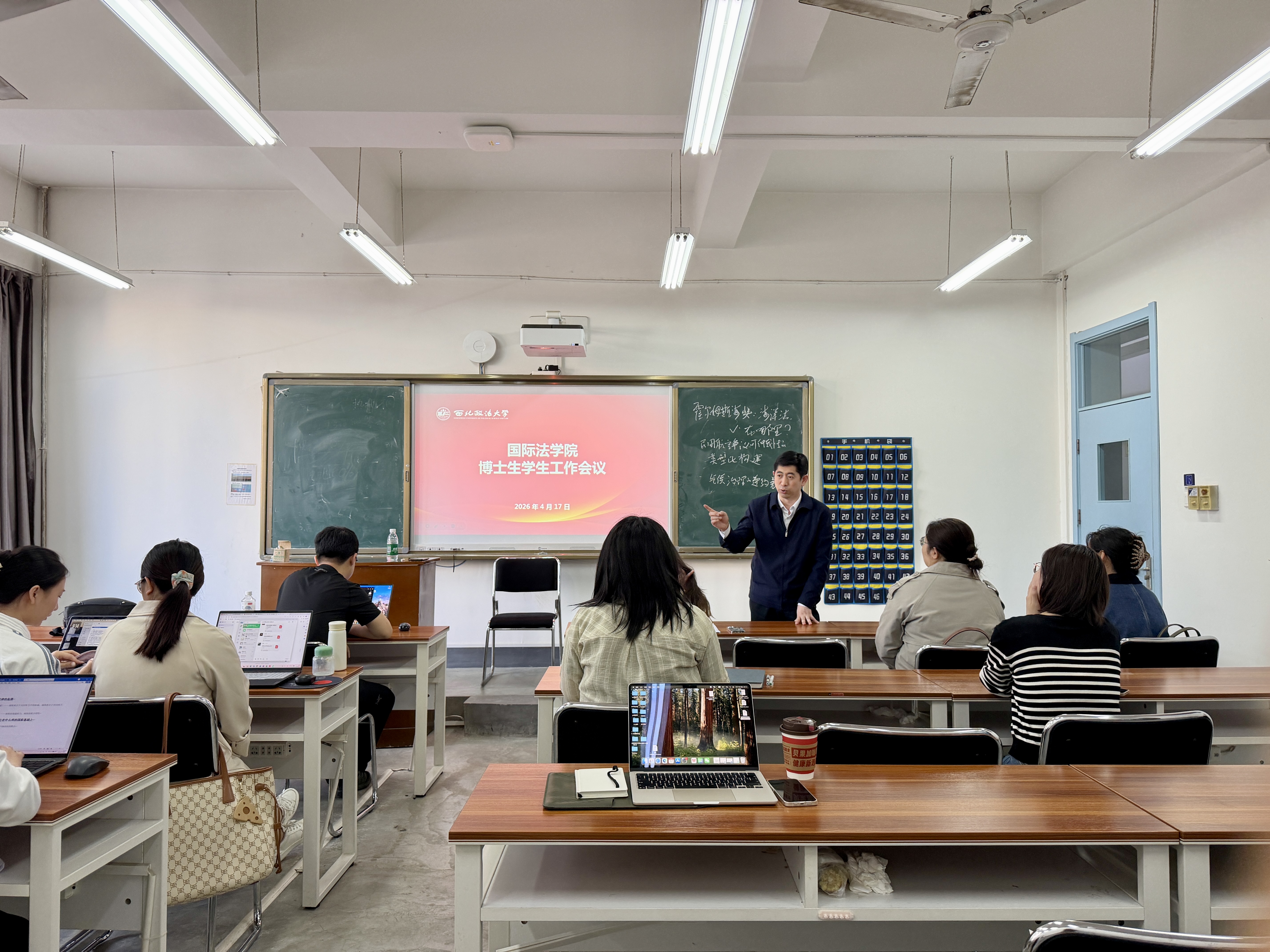 根据近日下发的《关于调整博士研究生管理权限的通知》及《西北政法大学博士研究生管理权限调整方案》要求,2025级博士生及2026年起招收的博士研究生新生的思想政治教育、日常管理、党团组织建设、学生人事及组织档案等工作,已统一划转至各相关学院。国际法学院在接到通知后高度重视此项工作,于2026年4月17日上午召开博士生工作会议。会议由国际法学院副院长吕江教授主持,2024级、2025级博士生参加,重点围绕博士生论坛筹备工作及博士生在学习、科研与成长发展中所面临的实际问题展开。